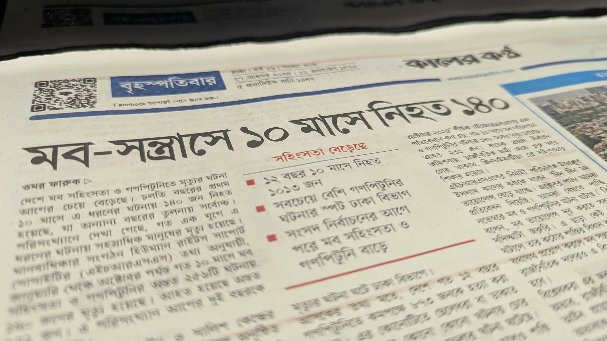 কালের কণ্ঠের শেষের পাতার খবর— ‘মব-সন্ত্রাসে ১০ মাসে নিহত ১৪০’