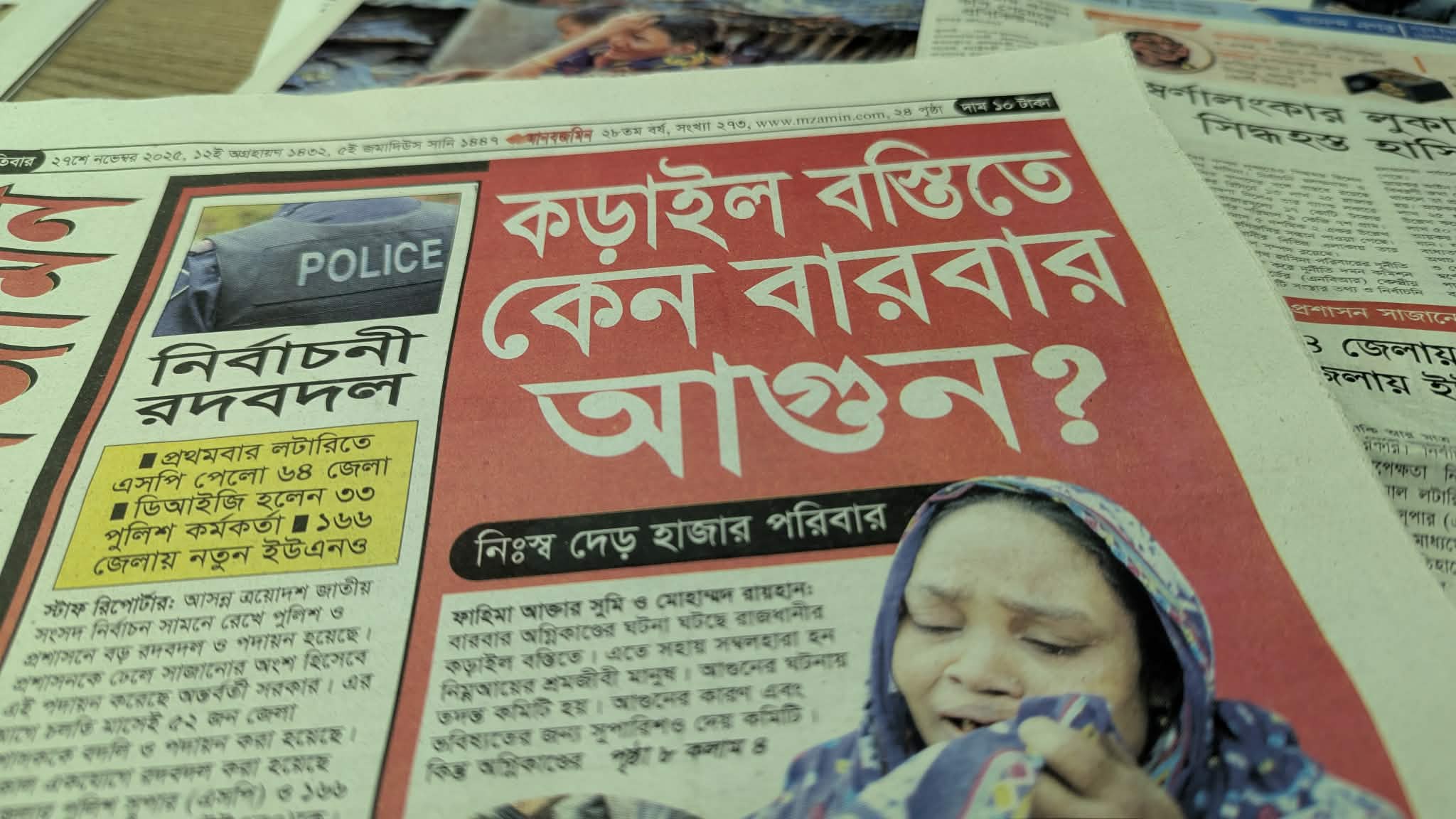 মানবজমিনের প্রথম পাতার খবর— ‘কড়াইল বস্তিতে কেন বারবার আগুন?’