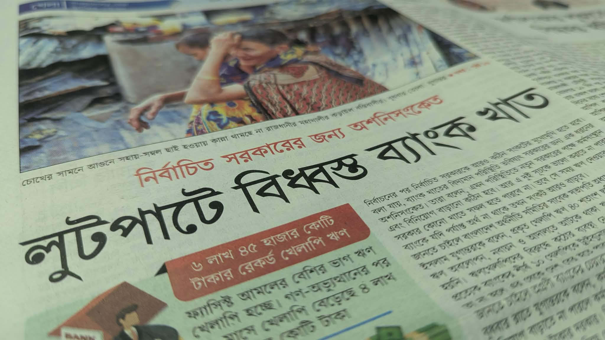 যুগান্তরের প্রথম পাতার প্রধান খবরের শিরোনাম— ‘নির্বাচিত সরকারের জন্য অশনিসংকেত/ লুটপাটে বিধ্বস্ত ব্যাংক খাত’