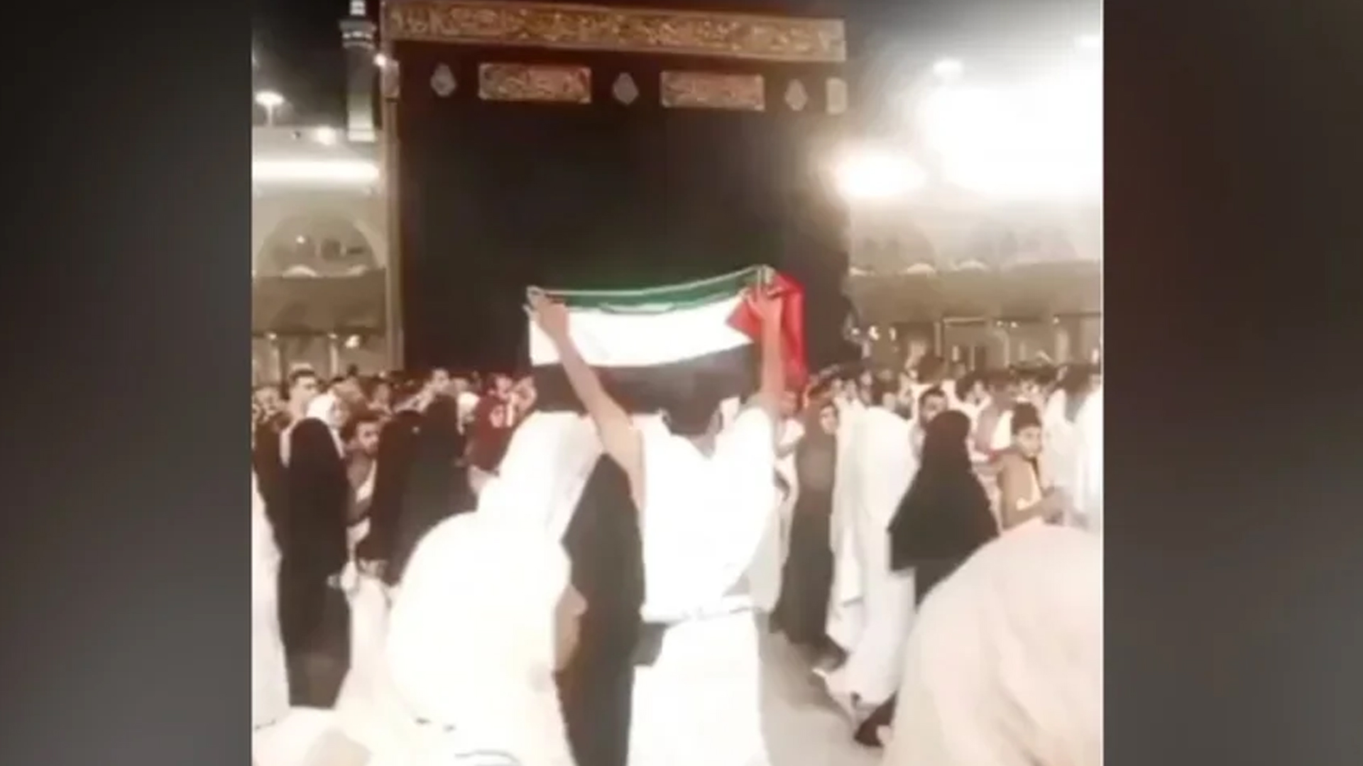 কাবার পাশে ফিলিস্তিনি পতাকা, হাজি গ্রেফতার