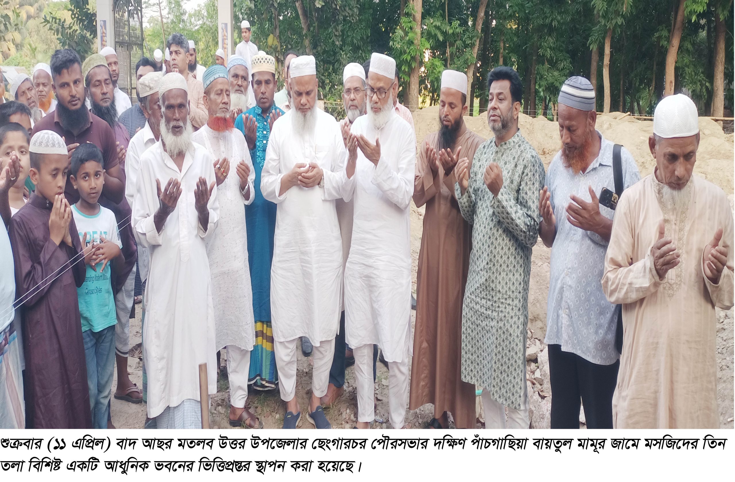 ছেংগারচর পৌরসভার দক্ষিণ পাঁচগাছিয়া বায়তুল মামূর জামে মসজিদের ভিত্তি প্রস্তর স্থাপন চাঁদপুরের মতলব উত্তর উপজেলার ছেংগারচর পৌরসভার দক্ষিণ পাঁচগাছিয়া বায়তুল