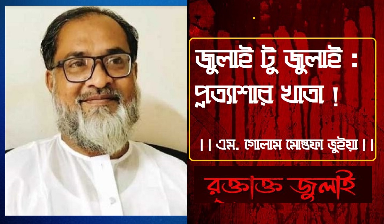 এম. গোলাম মোস্তফা ভুইয়া।। ২০২৪ সালের ৫ জুলাই থেকে ৫ আগস্ট পর্যন্ত ছাত্র জনতার হাজারো প্রাণের বিনিময়ে, রক্তাক্ত করে রাজপথ