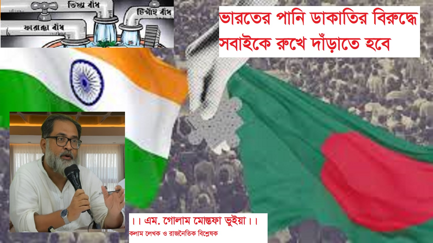 এম. গোলাম মোস্তফা ভুইয়া।। বাংলাদেশ ব্যাপকভাবে ভারতীয় পানি আগ্রাসনের সম্মুখীন হয়েছে। বাংলাদেশের মানুষ যখন গঙ্গার পানির ন্যায্য অধিকার থেকে বঞ্চিত