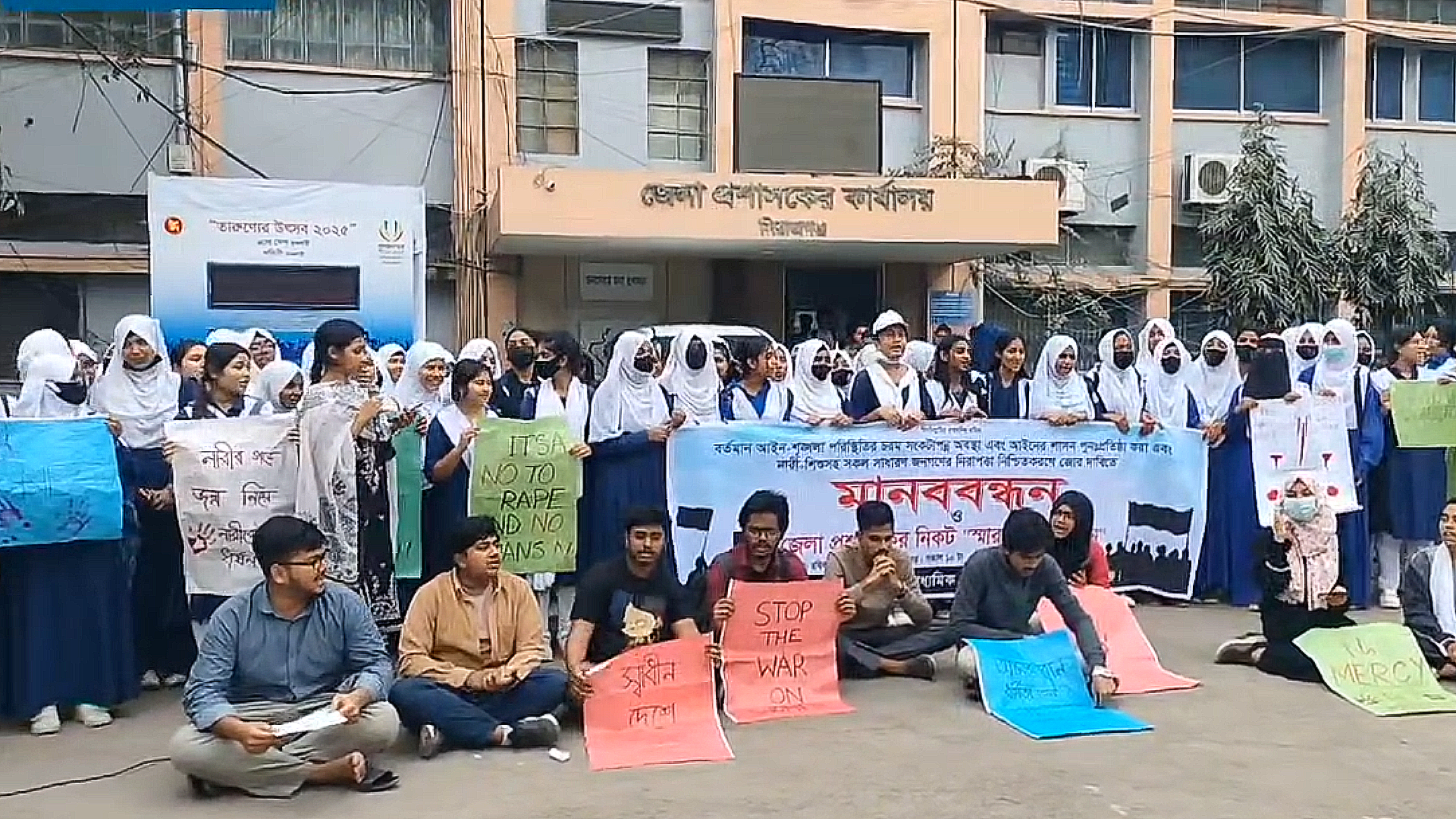 ধর্ষণ ও নারী নির্যাতনের প্রতিবাদে সিরাজগঞ্জে শিক্ষার্থীদের মানববন্ধন