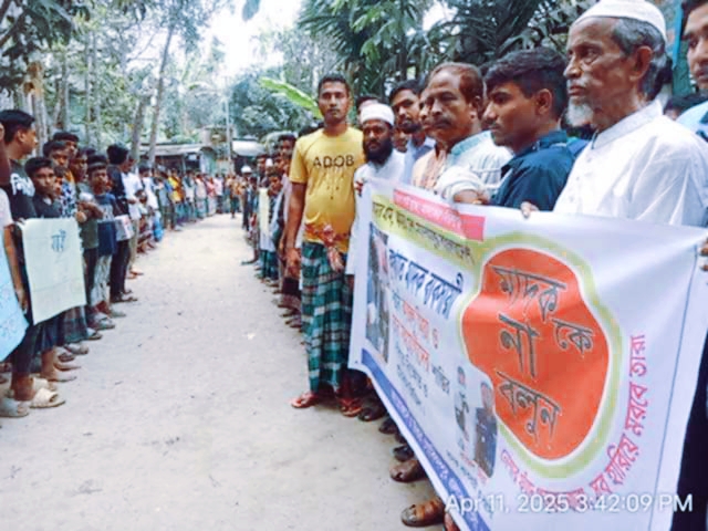 মাদক কারবারি কাজল মিয়ার বিরুদ্ধে বিক্ষোভ ও মানববন্ধন