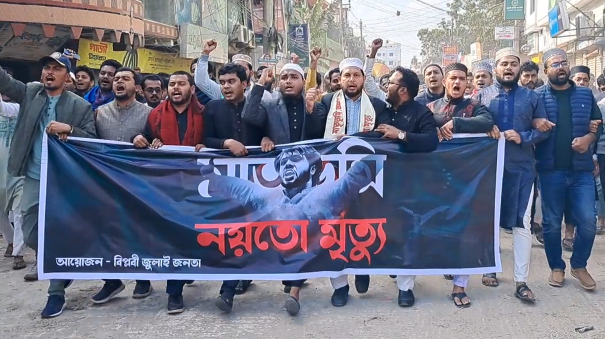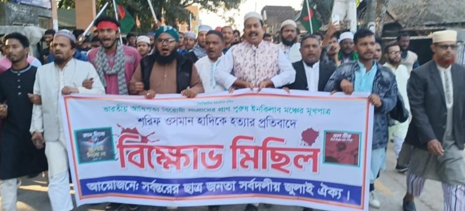 যশোর অফিস ইনকিলাব মঞ্চের মুখপাত্র শরীফ ওসমান হাদির হত্যাকারীদের অবিলম্বে গ্রেফতার ও বিচারের দাবিতে যশোরে বিক্ষোভ সমাবেশ করেছে মুক্তি মঞ্চ