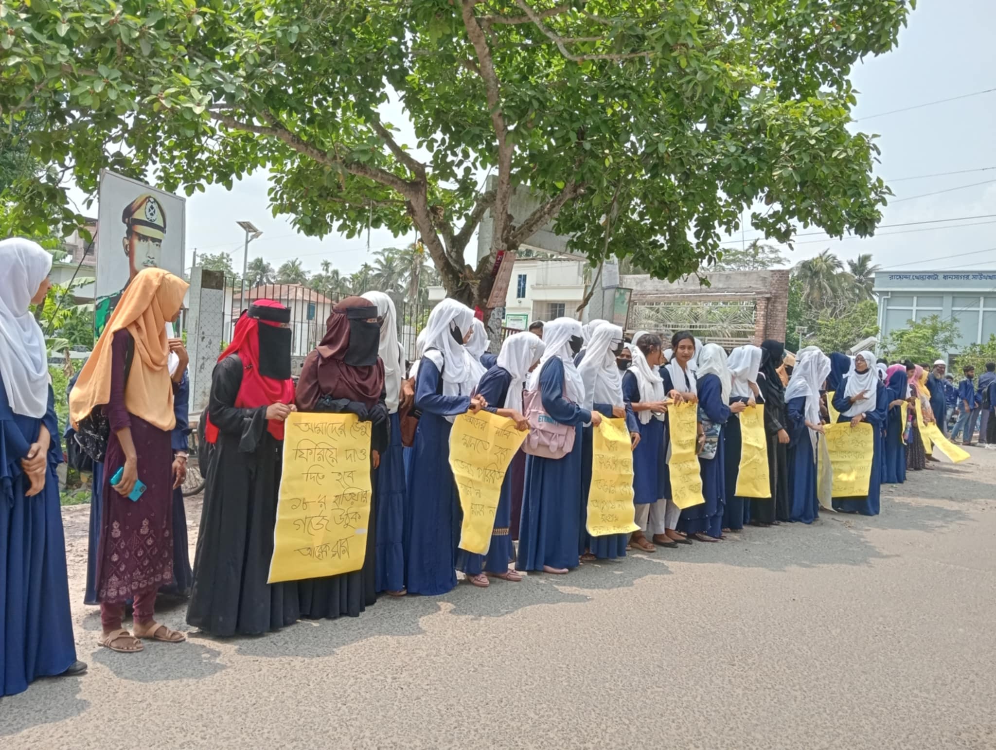 শরণখোলায় এইচএসসি ভেন্যু পরিবর্তনের প্রতিবাদে শিক্ষার্থীদের মানববন্ধন