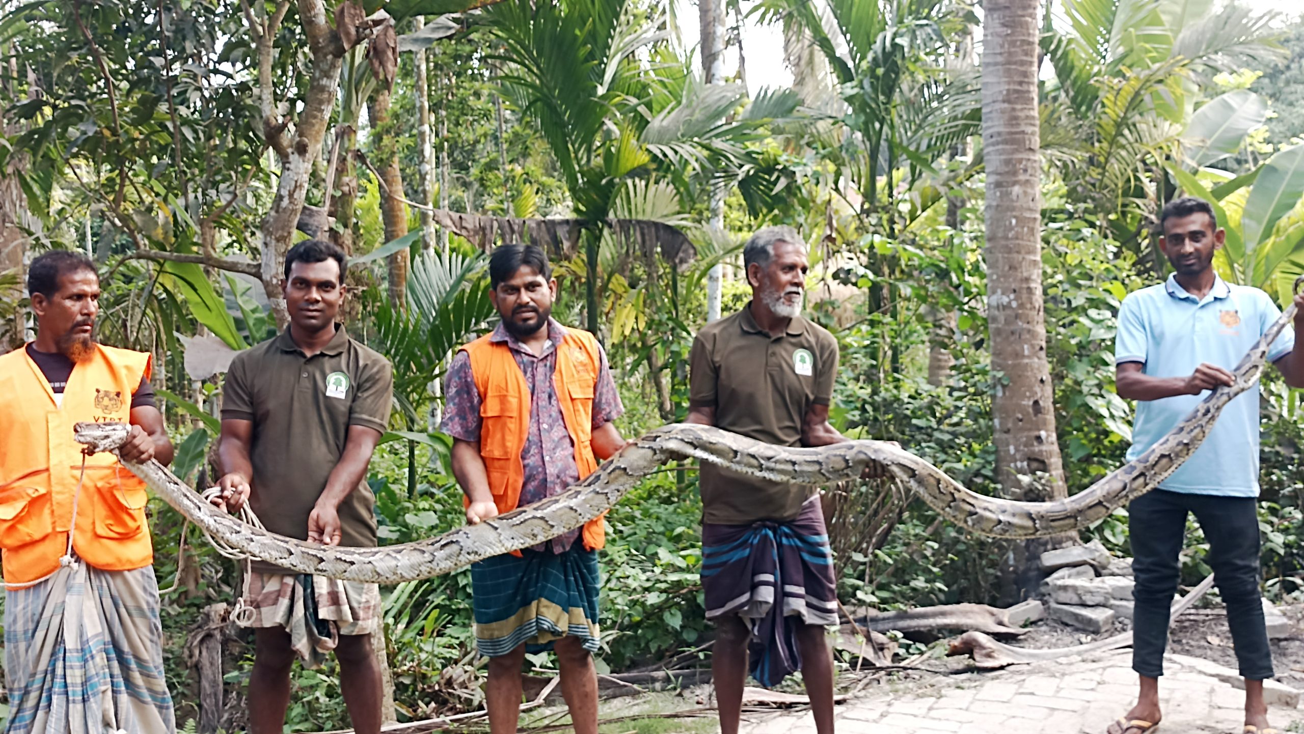 শরণখোলায় ২০ ফুট লম্বা অজগর উদ্ধার, বনে অবমুক্ত