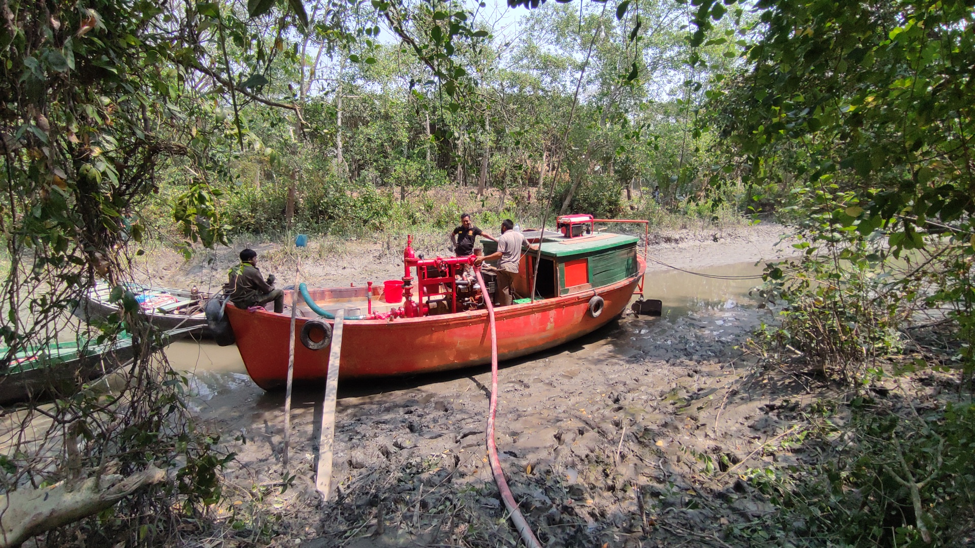 সুন্দরবনের আগুন নিয়ন্ত্রণে পানি ছিটাতে জোয়ারের অপেক্ষা