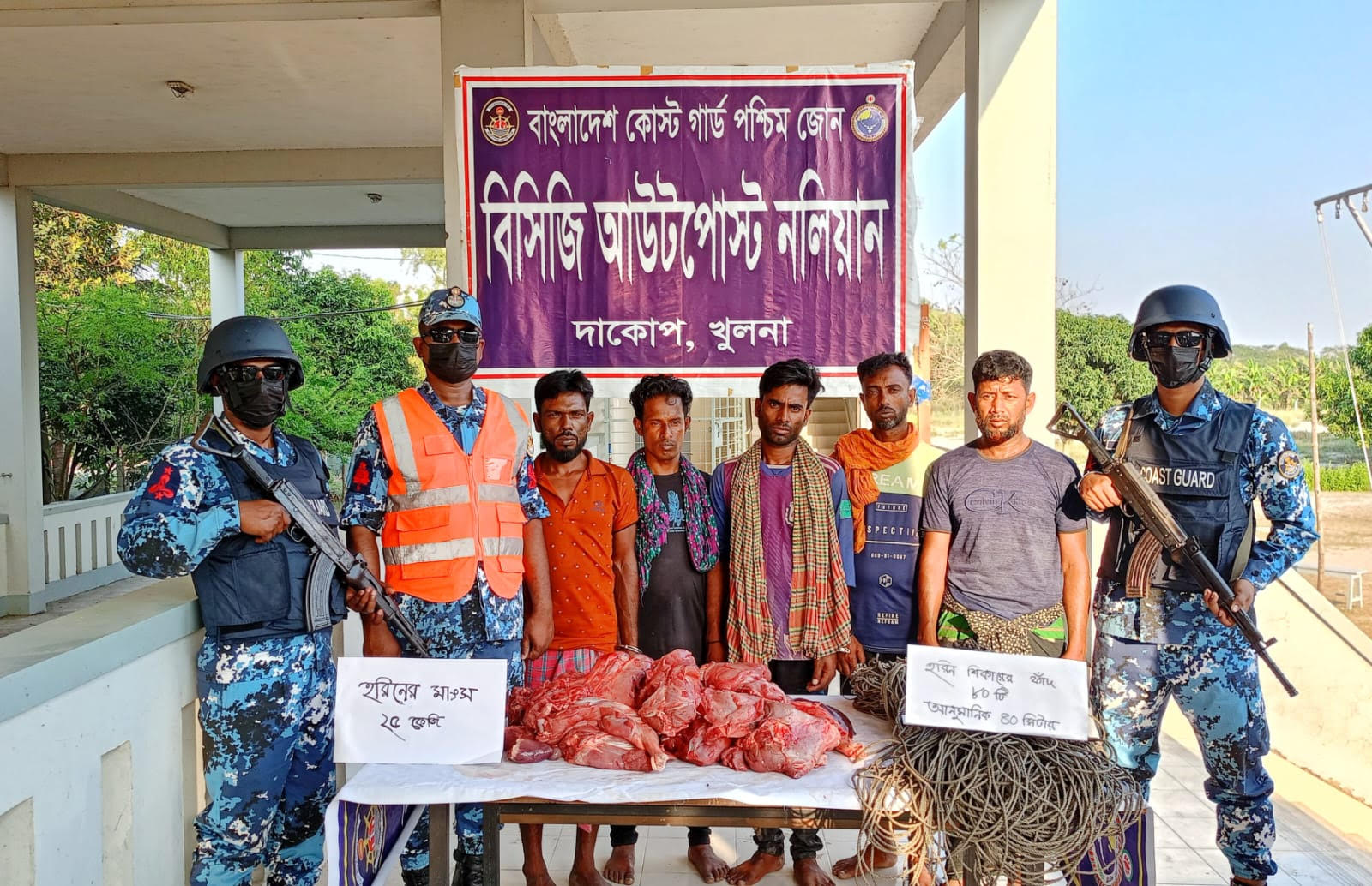সোহেল রানা বাবু, বাগেরহাট প্রতিনিধি সুন্দরবনের শিবসা নদীতে ২৫ কেজি হরিণের মাংসসহ ৫ হরিণ শিকারীকে আটক করেছে মোংলাস্হ কোস্ট গার্ড