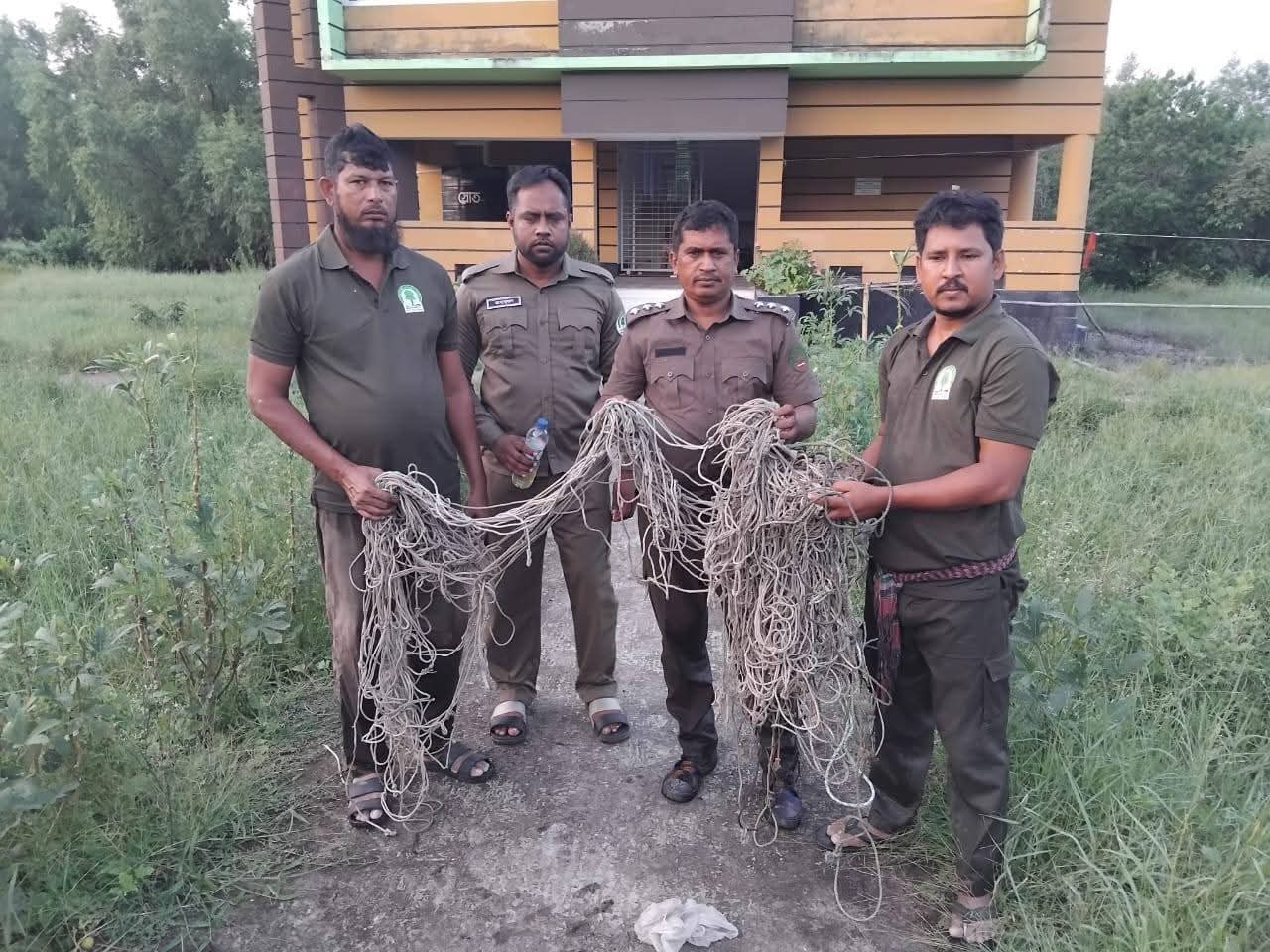 শরণখোলা (বাগেরহাট) প্রতিনিধি: পূর্ব সুন্দরবনে অভিযান চালিয়ে বনের বালির নিচে লুকানো ১০৫ ফুট লম্বা একটি মালা ফাঁদসহ বিপুল সংখ্যক ফাঁদ