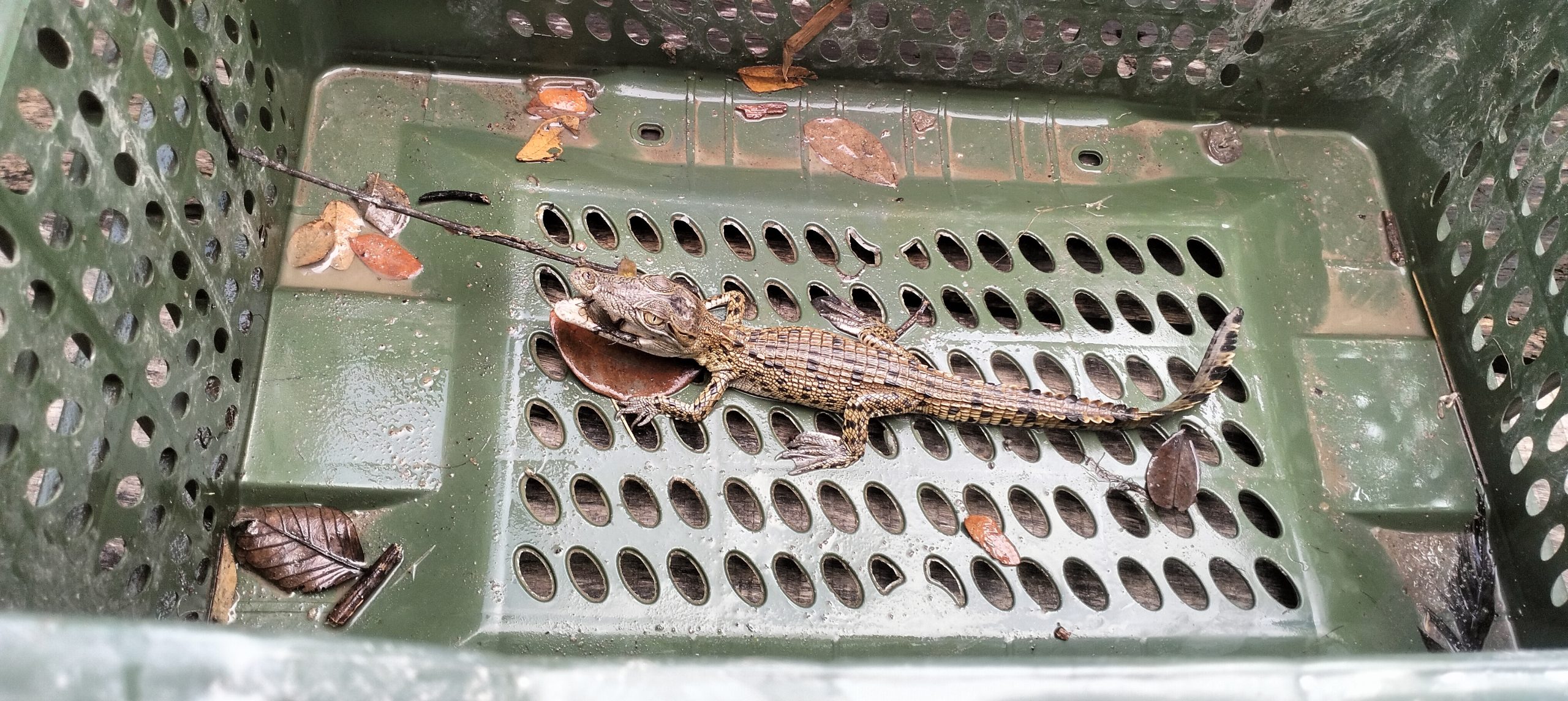 শরণখোলায় লোকালয় থেকে কুমিরের ছানা উদ্ধার, সুন্দরবনে অবমুক্ত