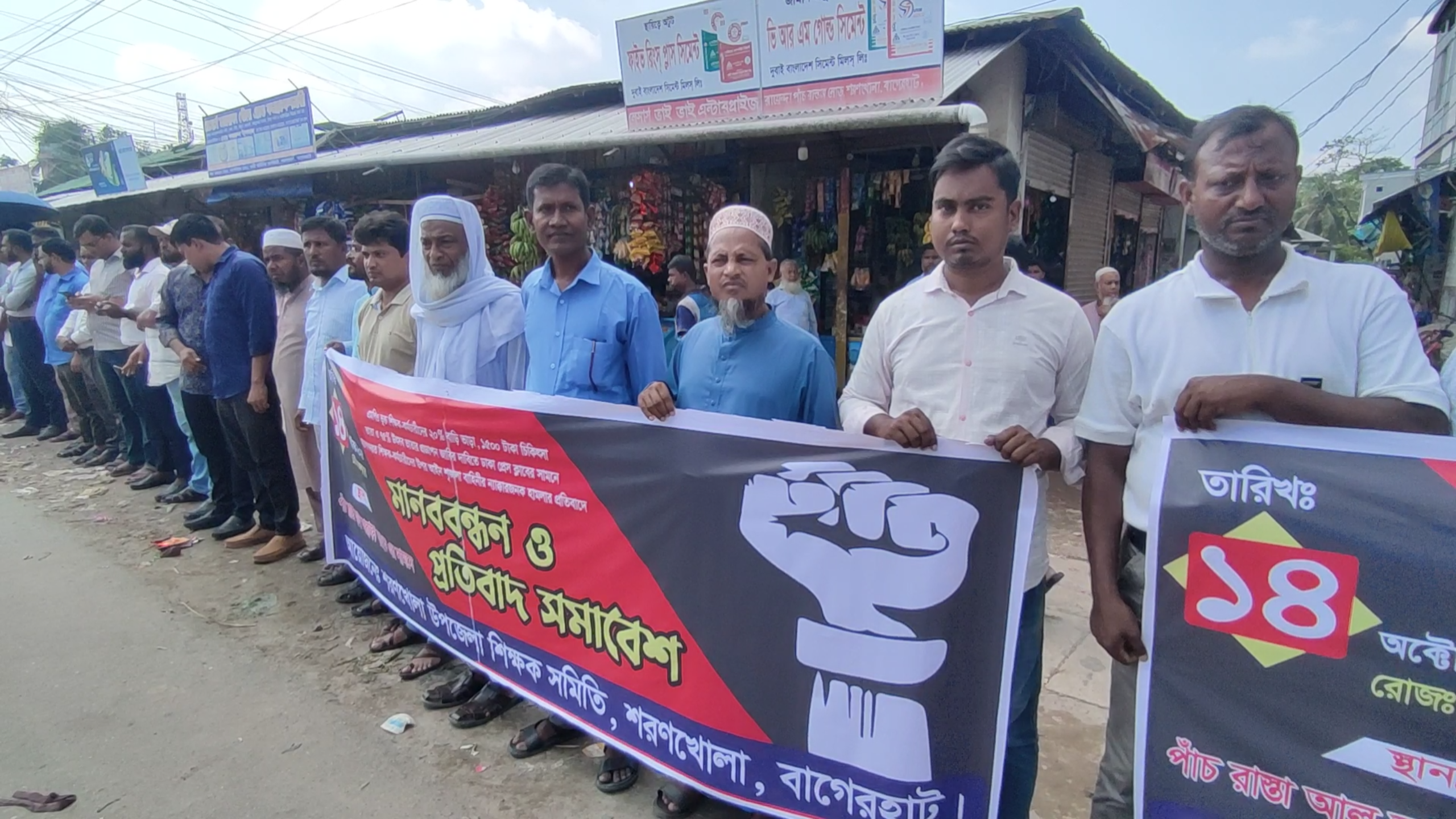 শরণখোলা (বাগেরহাট) প্রতিনিধি: ঢাকায় বেসরকারি শিক্ষকদের উপর পুলিশের ন্যাক্কারজনক হামলা ও ২০% বাড়ি ভাতা সহ ৩ দফা দাবির সমর্থনে শরণখোলায়