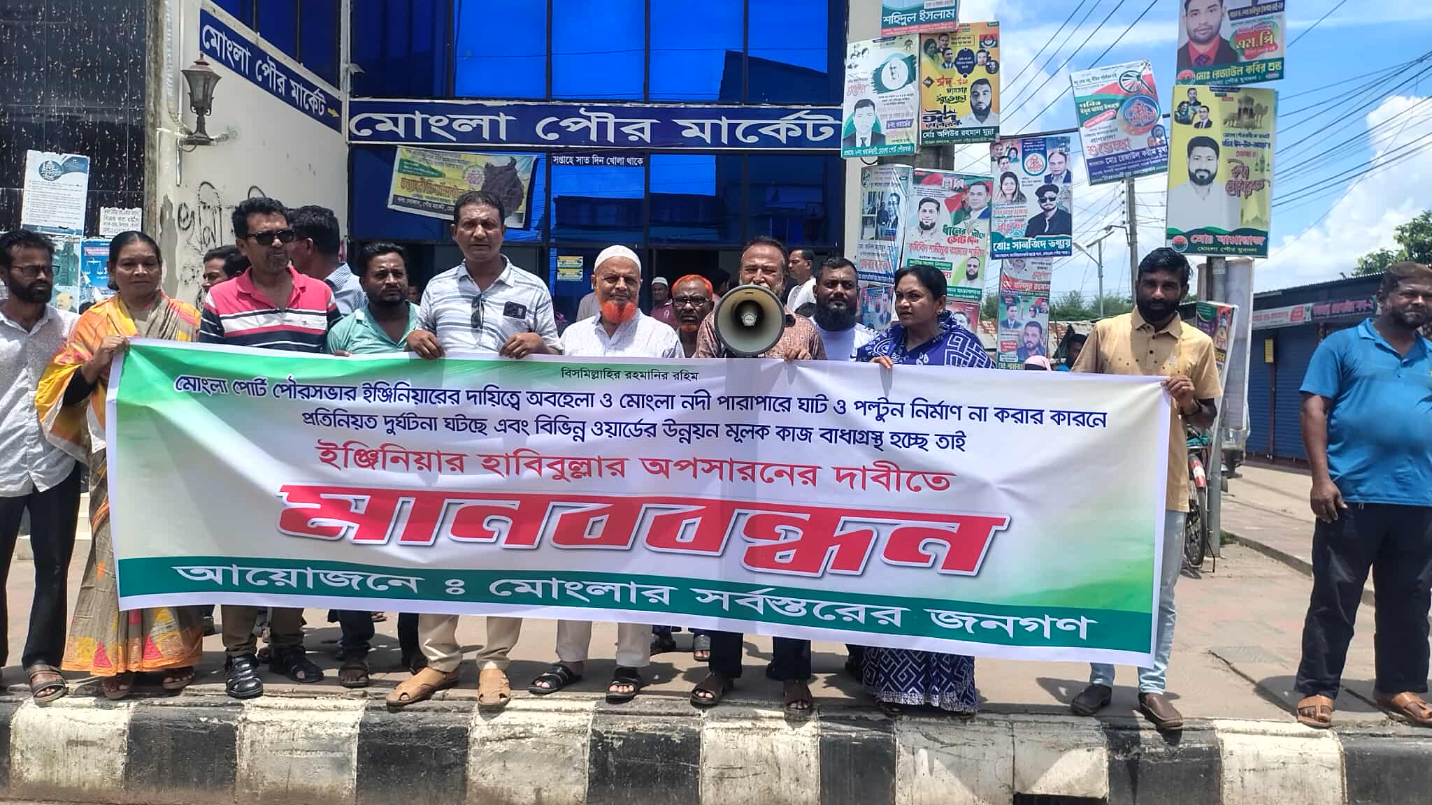 মোংলায় প্রকৌশলী হাবিবুল্লার অপসারণের দাবীতে মানববন্ধন