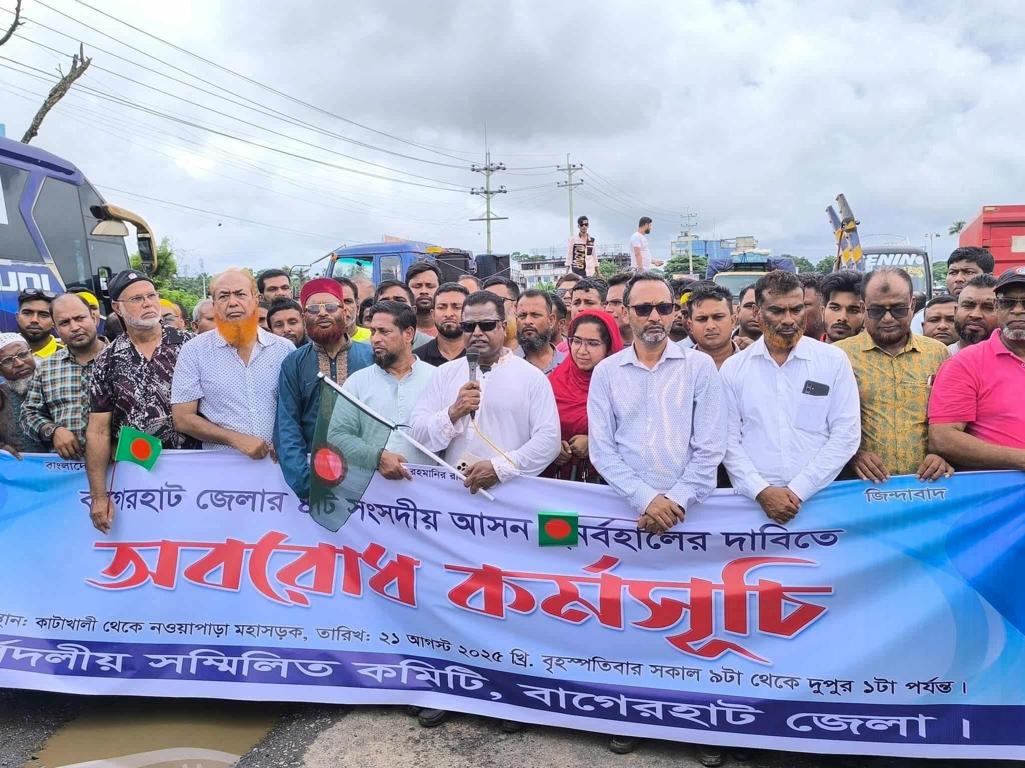 বাগেরহাট-৪ সংসদীয় আসন বহালের দাবিতে সড়ক অবরোধ