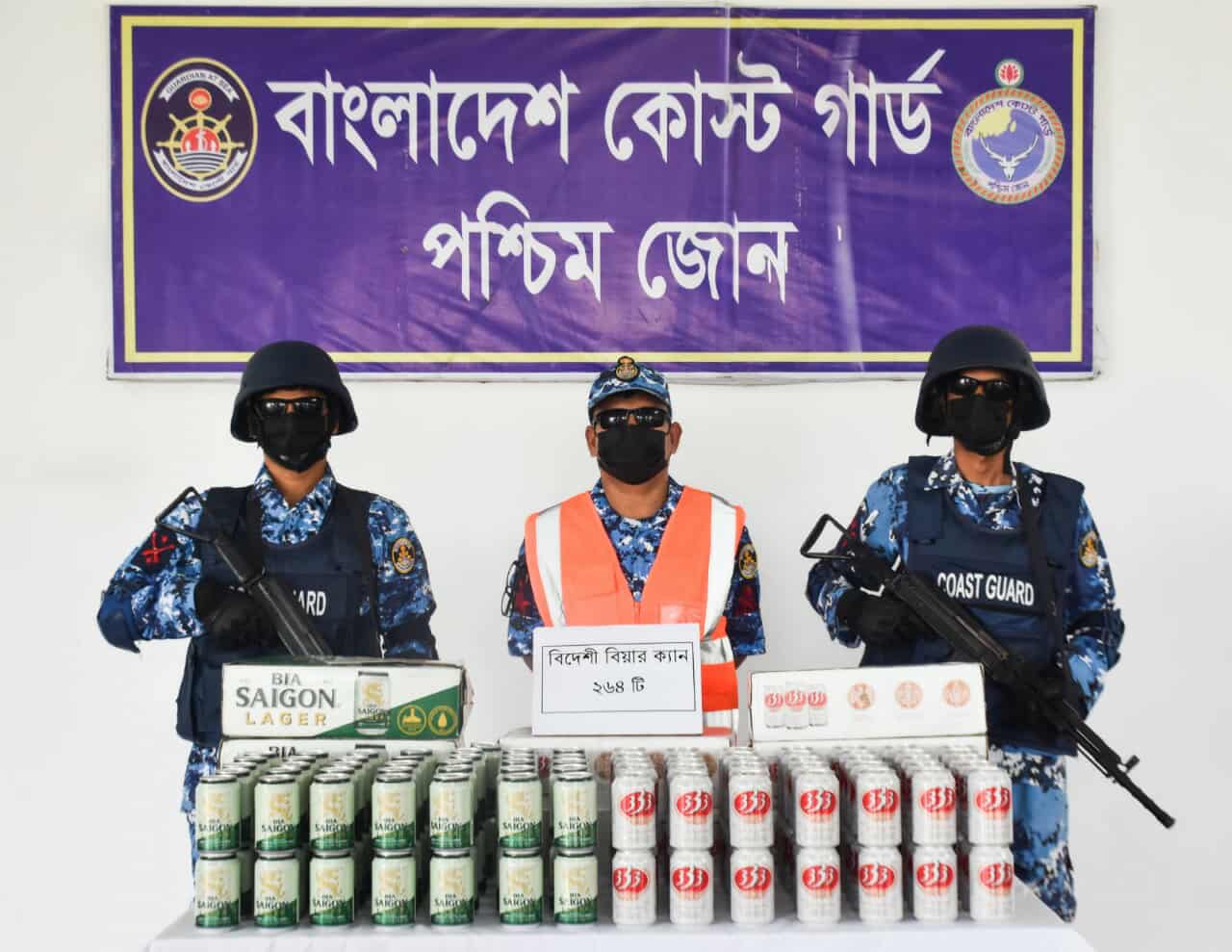 মোংলায় কোস্টগার্ডের অভিযানে বিপুল পরিমাণ বিয়ার জব্দ