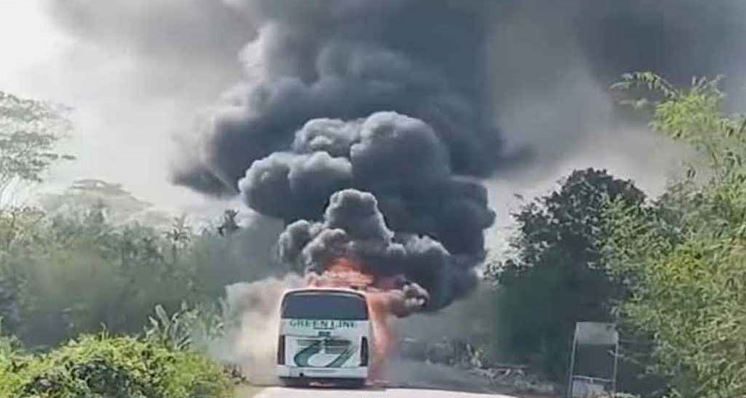 ঢাকা-বরিশাল মহাসড়কে গ্রীনলাইন পরিবহনের একটি চলন্ত বাসে অগ্নিকাণ্ডের ঘটনা ঘটেছে। বাসটিতে তখন ২০ জন যাত্রী ছিলেন। বৃহস্পতিবার (৬ মার্চ) সকাল