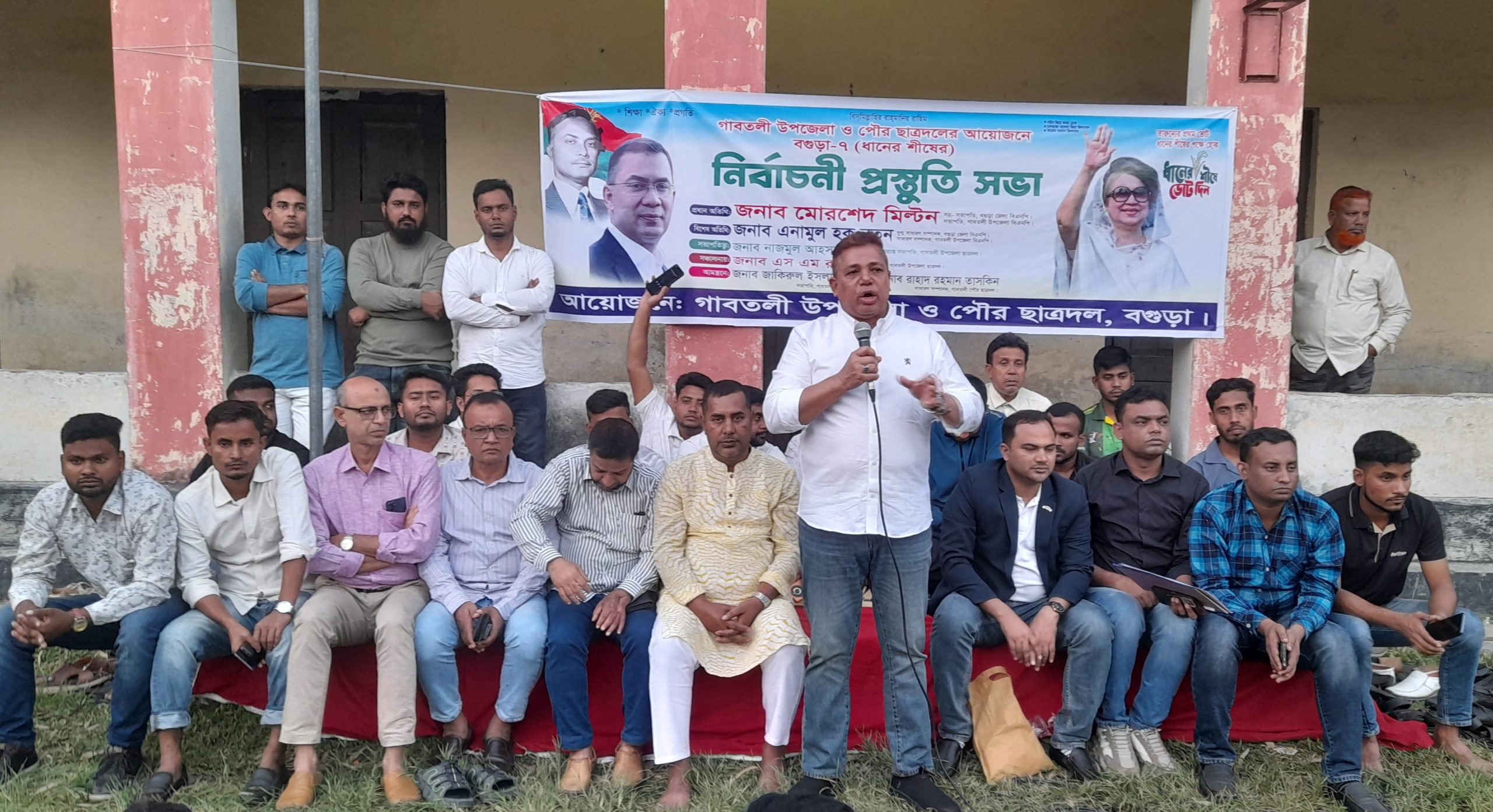 বগুড়ার গাবতলীতে বিএনপির কর্মী সভা ও নির্বাচনী জনসংযোগ করেন মিল্টন