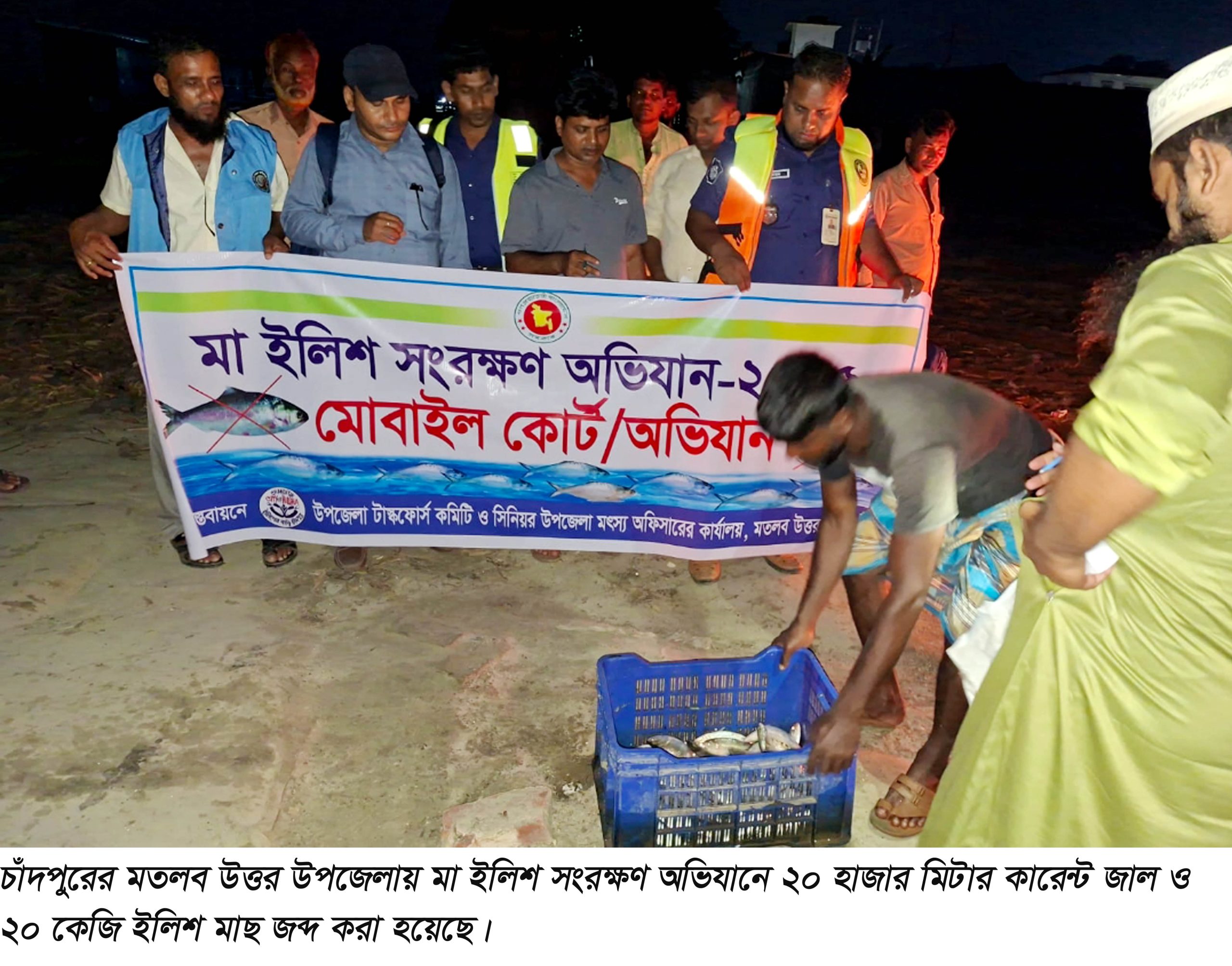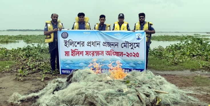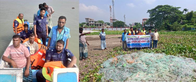 মতলব উত্তরে মা ইলিশ সংরক্ষণ অভিযানে ২০ হাজার মিটার কারেন্ট জাল জব্দ