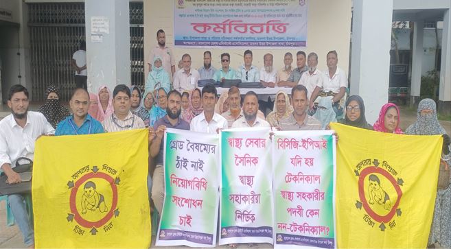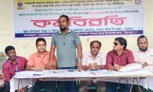মতলব উত্তরে স্বাস্থ্য সহকারীদের দ্বিতীয় দিনের মতো অনির্দিষ্টকালের কর্মবিরতি