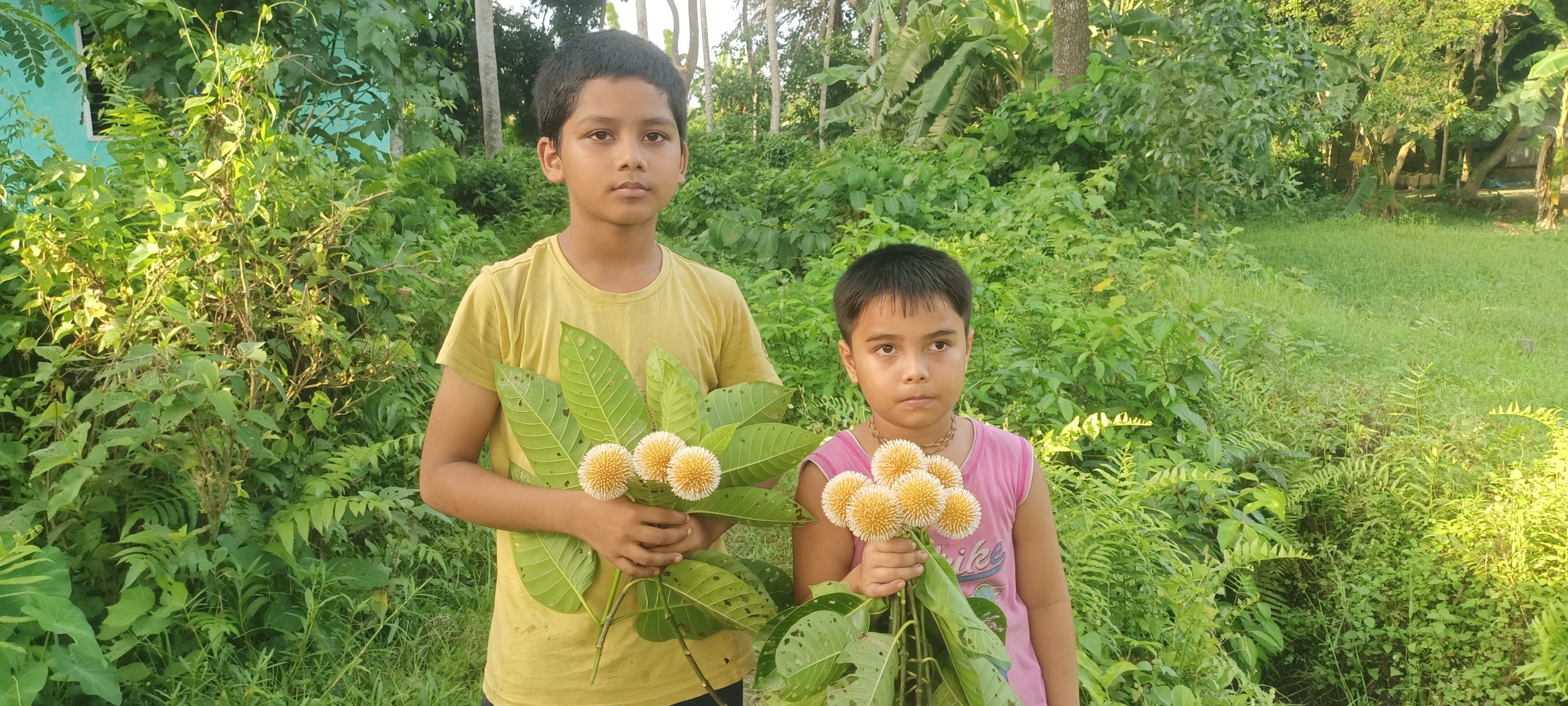 কদম ফুলে শিশুর চোখে-মুখে আনন্দের ঝিলিক