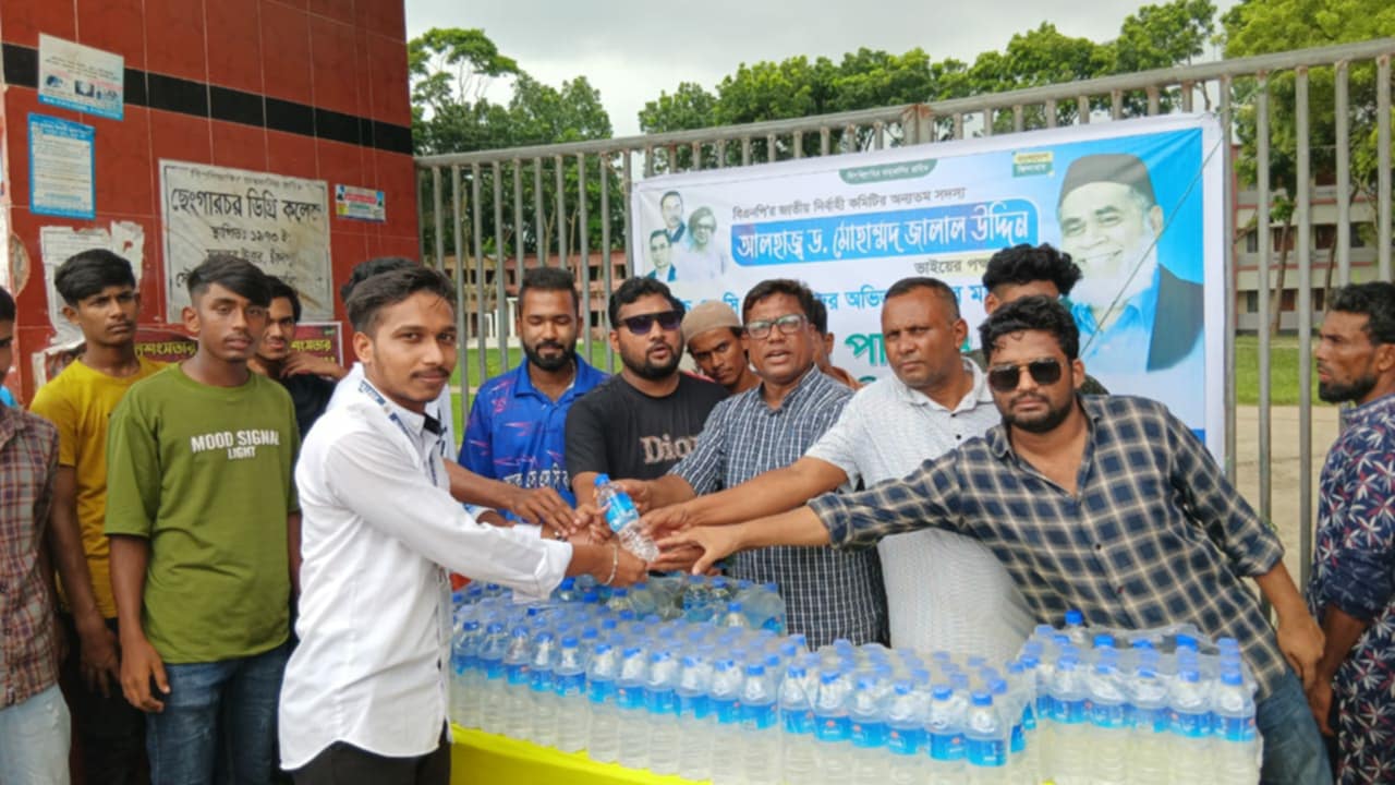 এইচএসসি পরীক্ষার্থীদের মাঝে ছেংগারচর পৌর ছাত্রদলের পানির বোতল ও স্যালাইন বিতরণ