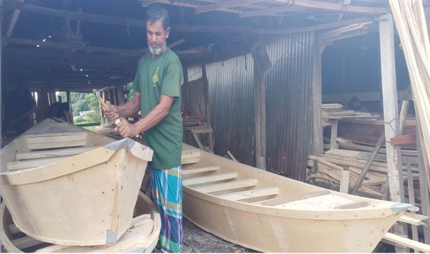 বর্ষার আগমনে নৌকা তৈরিতে ব্যস্ত মতলবের সটাকী বাজারের কারিগররা