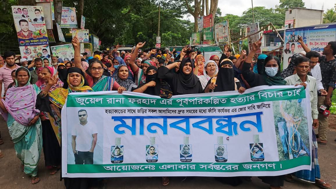 মতলব উত্তরে গুমের পর হত্যা, আসামীদের ফাঁসির দাবিতে মানববন্ধন