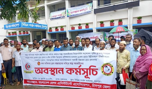 ছয় দফা দাবিতে চাঁদপুরে স্বাস্থ্য সহকারীদের অবস্থান কর্মসূচি