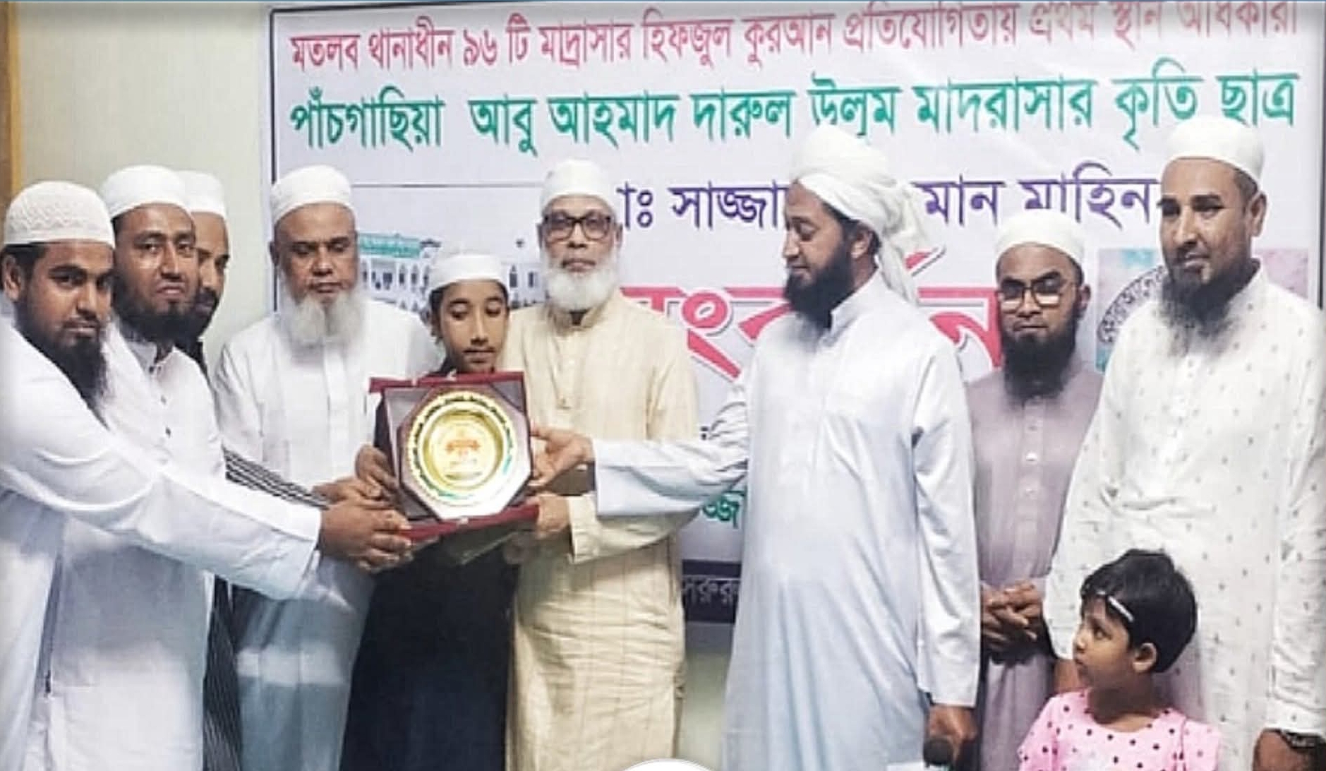 মতলব (চাঁদপুর) প্রতিনিধিঃ চাঁদপুরের মতলব উত্তর উপজেলার পাঁচগাছিয়া আবু আহমাদ দারুল উলুম মাদ্রাসার কৃতি ছাত্র হাফেজ সাজ্জাদুর রহমান মাহিন ‘কোরআনের