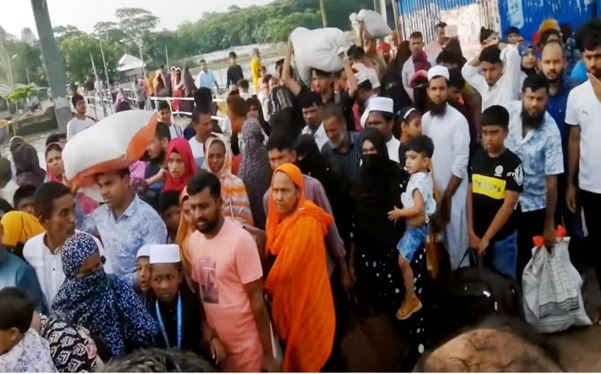 মতলবের লঞ্চঘাটগুলোতে ঈদের লম্বা ছুটি কাটিয়ে কর্মস্থলে ফেরা কর্মজীবী যাত্রীদের উপচেপড়া ভিড়