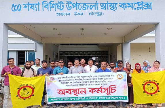 ৬ দফা দাবিতে মতলব উত্তরে স্বাস্থ্য সহকারীদের অবস্থান কর্মসূচি পালিত