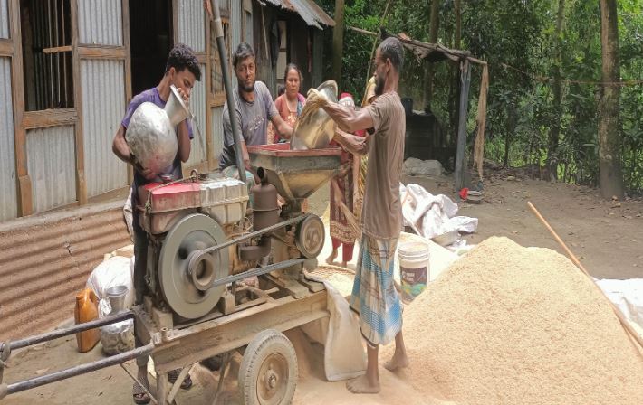 মতলব উত্তরে জনপ্রিয় হয়ে উঠছে ভ্রাম্যমাণ ধান ভাঙার মেশিন