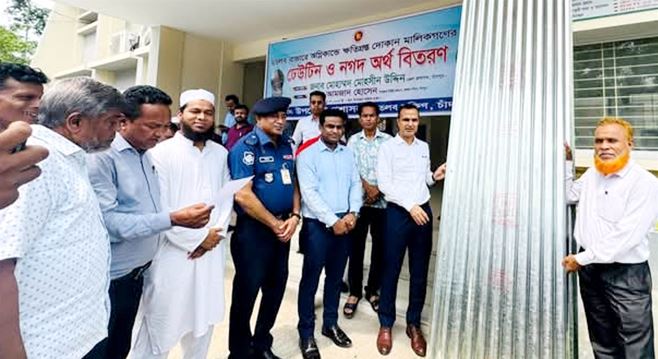 মতলব দক্ষিণে অগ্নিকান্ডে ক্ষতিগ্রস্তদের মাঝে ঢেউটিন বিতরণ জেলা প্রশাসকের