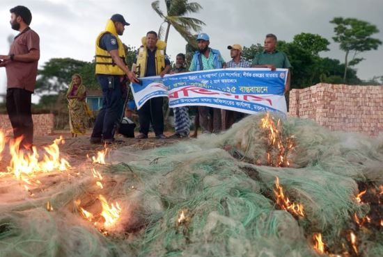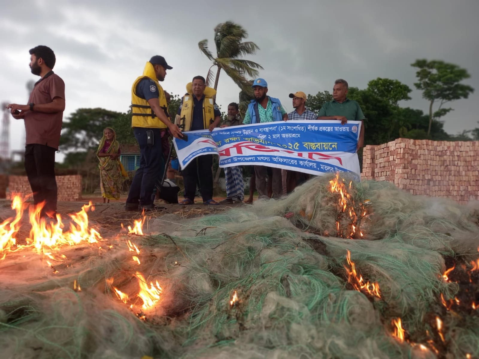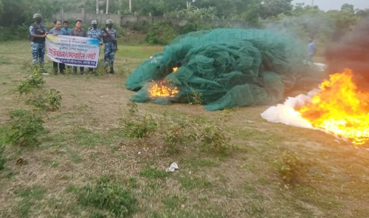 মতলব উত্তরে অবৈধ জাল-মশারি-রিং চাই আগুনে পুড়িয়ে বিনষ্ট