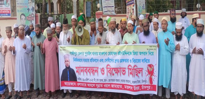 মতলব উত্তরে মাওলানা রইস উদ্দিন হত্যার প্রতিবাদে মানববন্ধন ও বিক্ষোভ