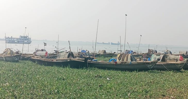 মেঘনায় নিষেধাজ্ঞা শেষে মাছ ধরতে নদীতে জেলেরা