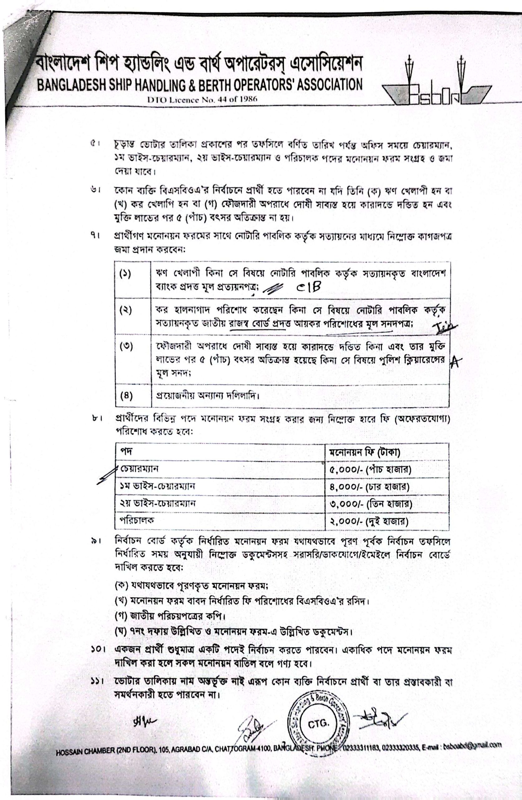 চট্টগ্রাম প্রতিনিধি বাংলাদেশ শিল্প হ্যান্ডলিং অ্যান্ড বার্থ অপারেটরস অ্যাসোসিয়েশন (বিএসবিওএ)-এর নির্বাহী কমিটির (২০২৫–২০২৬ ও ২০২৬–২০২৭) নির্বাচনে মনোনয়নপত্র জমা দিতে গিয়ে