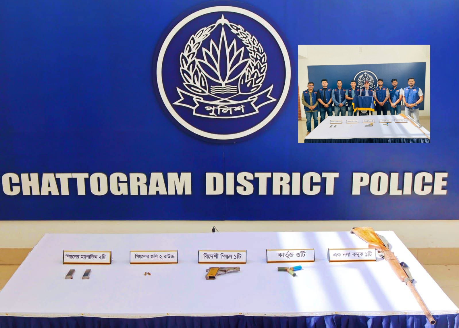 চট্টগ্রামে দেশি-বিদেশি অস্ত্র-গুলিসহ গ্রেপ্তার ৩