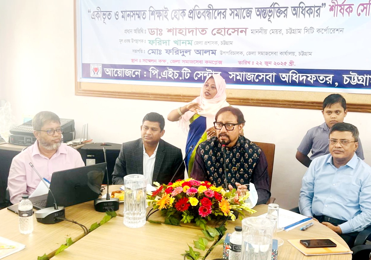 ইসমাইল ইমন, চট্টগ্রাম প্রতিনিধি বাক ও শ্রবণ প্রতিবন্ধীরা সমাজের অবিচ্ছেদ্য অংশ উল্লেখ করে চট্টগ্রাম সিটি কর্পোরেশনের মেয়র ডা. শাহাদাত হোসেন