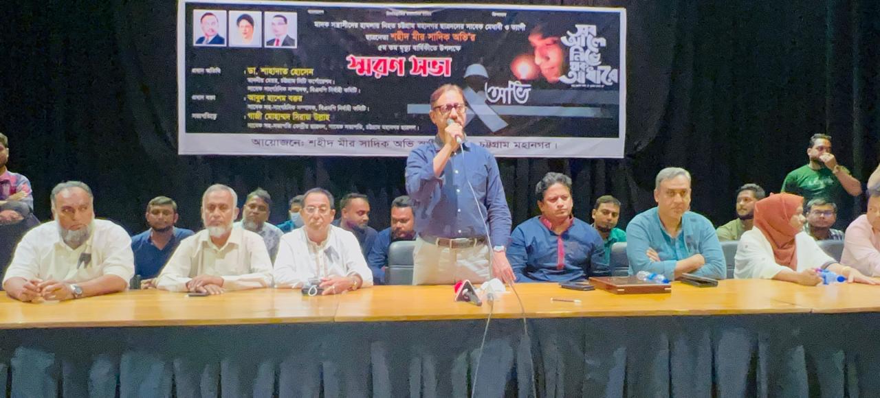 মীর সাদিক অভির নামে চট্টগ্রামে একটি সড়কের নামকরণ করা হবে: ডা. শাহাদাত