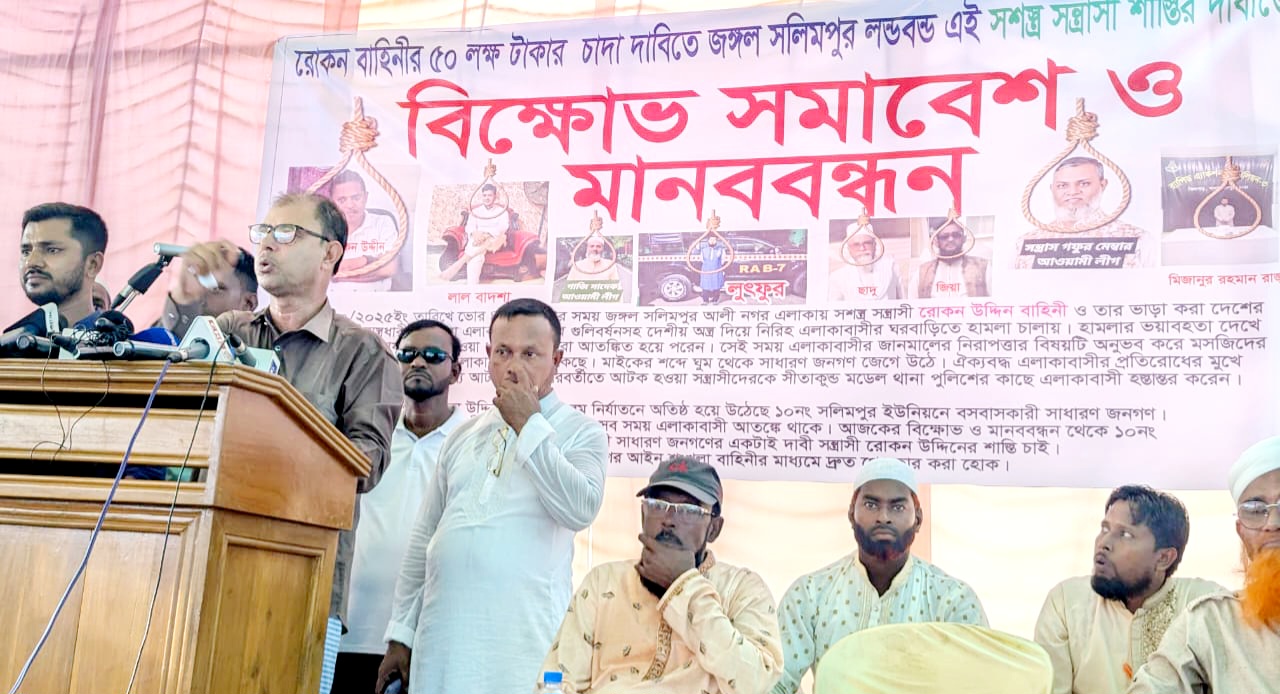 সলিমপুরের সন্ত্রাসী রোকন বাহিনীর শাস্তির দাবীতে বিক্ষোভ ও মানববন্ধন