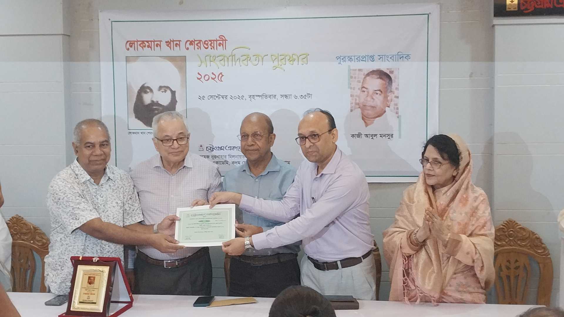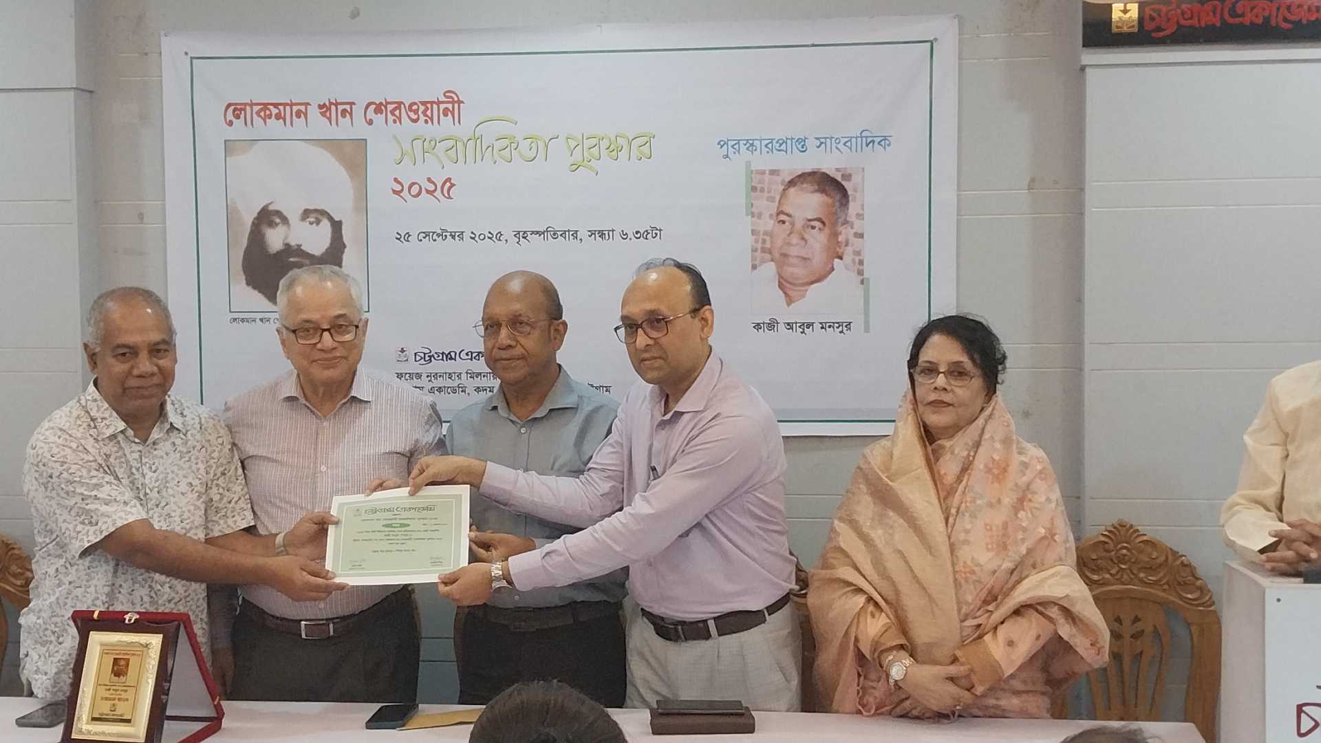 চট্টগ্রাম একাডেমির লোকমান খান শেরওয়ানী পুরস্কার পেয়েছেন বরেণ্য সাংবাদিক কাজী মনসুর