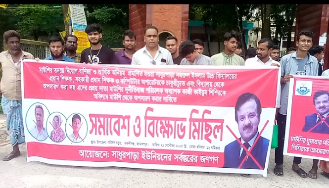 বকশীগঞ্জ (জামালপুর) প্রতিনিধি জামালপুরের বকশীগঞ্জ উপজেলায় দুর্নীতি ও স্বজনপ্রীতির অভিযোগে অভিযুক্ত দুই শিক্ষক অপসারণের দাবিতে মানববন্ধন ও বিক্ষোভ সমাবেশ করেছে