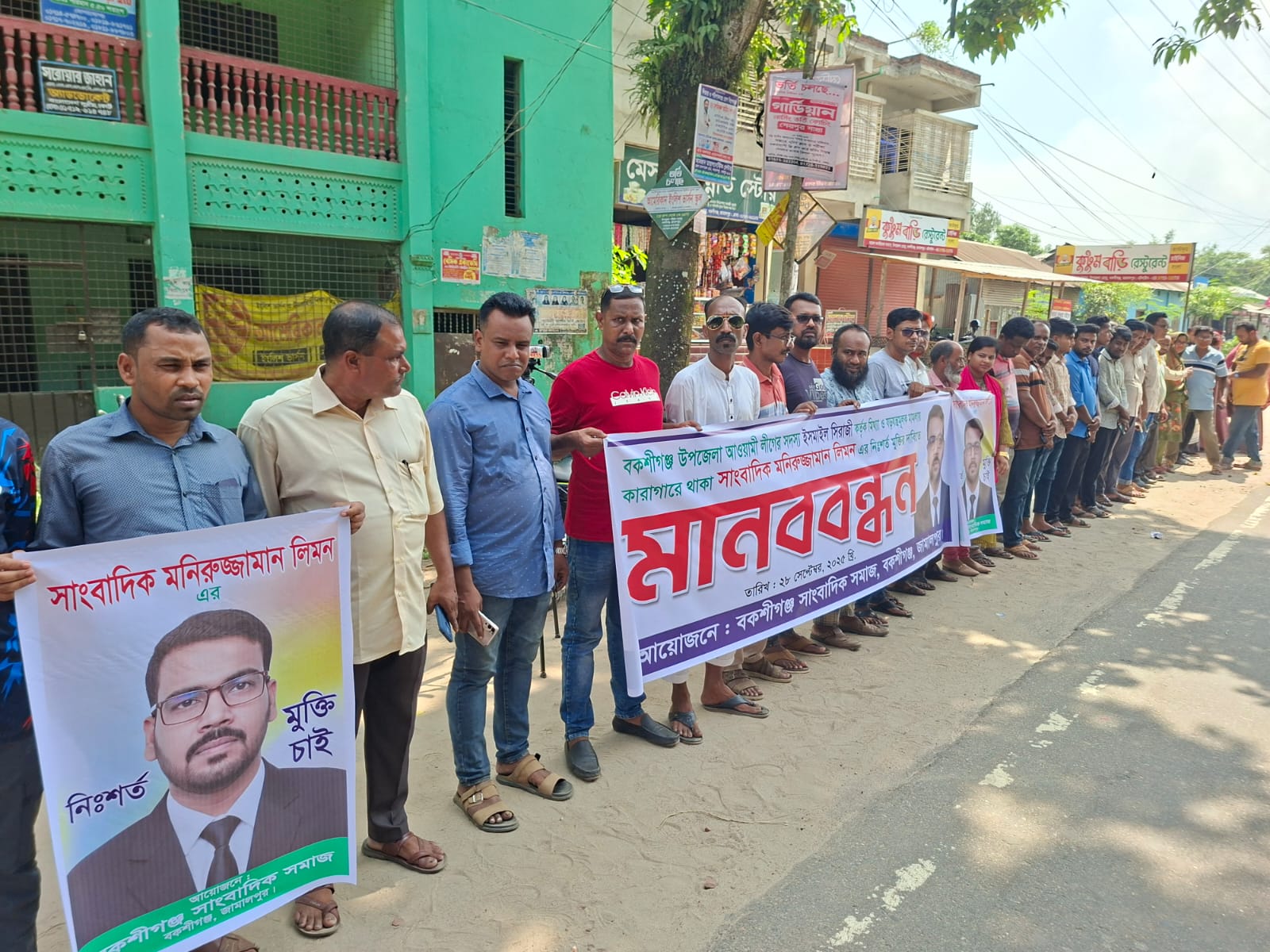 বকশীগঞ্জে সাংবাদিক মনিরুজ্জামান লিমনের কারামুক্তির দাবিতে মানববন্ধন