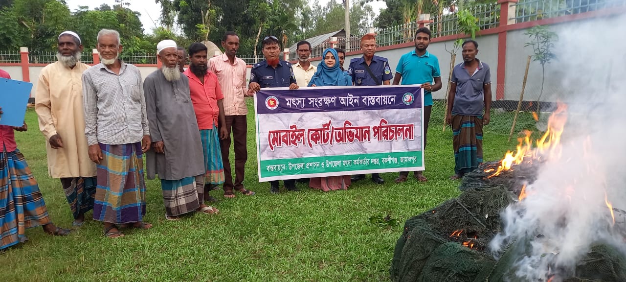 বকশীগঞ্জ অভিযানে নিষিদ্ধ ২০টি রিং জাল পুড়িয়ে ধ্বংস