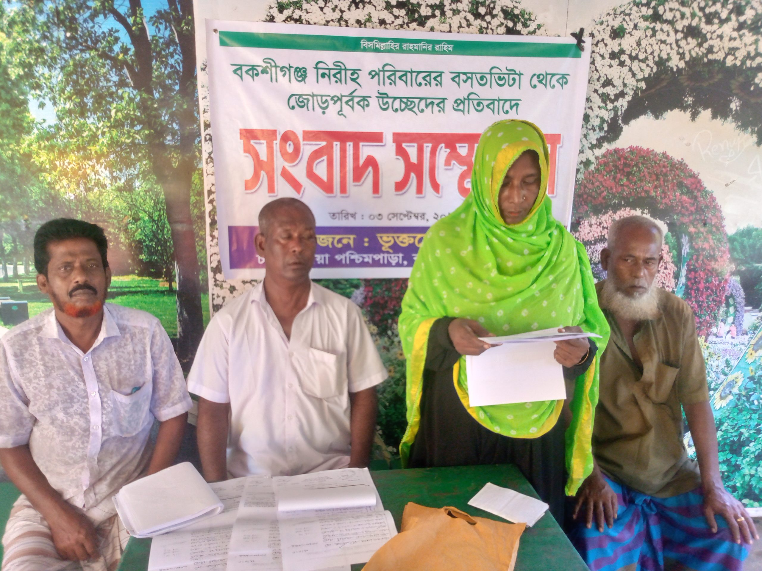 বকশীগঞ্জে জোরপূর্বক বসতভিটা থেকে উচ্ছেদের পাঁয়তারা, তিন পরিবারের সংবাদ সম্মেলন