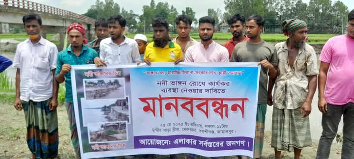 বকশীগঞ্জে নদী ভাঙ্গন প্রতিরোধে স্থায়ী পদক্ষেপ গ্রহণের দাবীতে মানববন্ধন