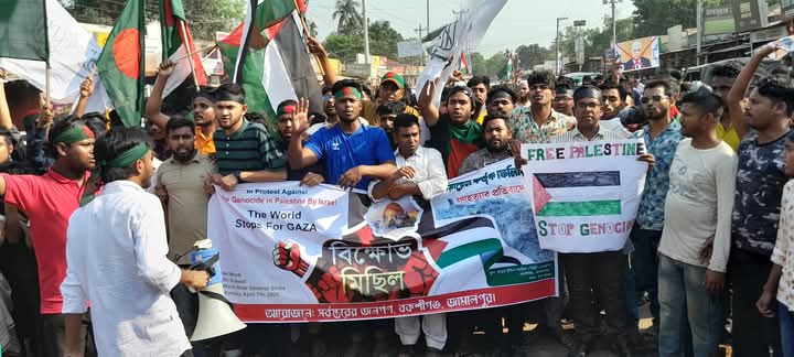 ফিলিস্তিনে ইসরায়েলি গণহত্যা বন্ধের দাবিতে বকশীগঞ্জে বিক্ষোভ