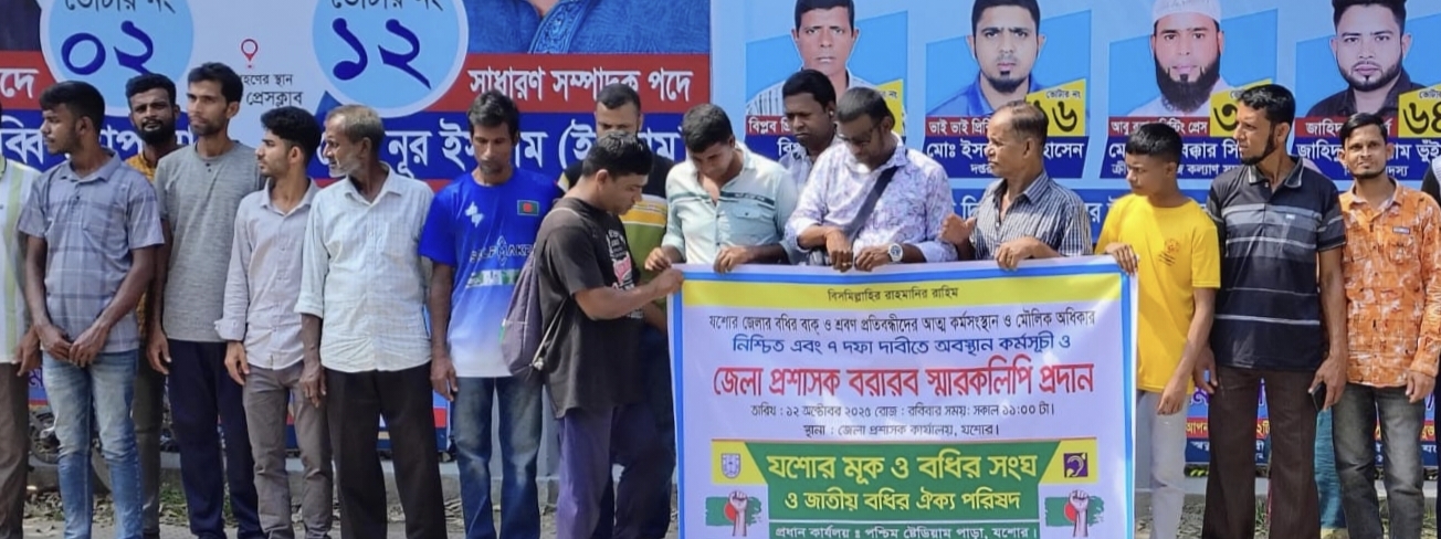যশোর বধির-শ্রবণপ্রতিবন্ধীদের আত্মকর্মসংস্থান ও মৌলিক অধিকার নিশ্চিতের দাবিতে স্মারকলিপি প্রদান